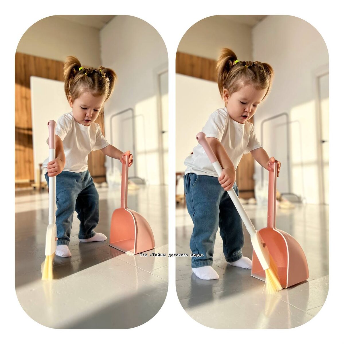 Вы наверняка замечали, как малыш с серьезным лицом хватал ваш веник или швабру и принимался энергично орудовать им по полу. Поздравляю! Самое время поддержать его стремление и желание, а так же приобрести соразмерные с ним предметы для уборки, потому что управлять ими малышу будет намного легче! Что означает подметание пола для ребёнка? Оказывается, это не просто акт уборки, а комплексный элемент развития, обладающий несколькими важными функциями: ▫️Развитие моторики и координации движений. Захватывание веника и работа с ним требуют точности и контроля мышц рук и корпуса. ▫️Психологическое воздействие. Подметание даёт возможность ощутить значимость своих усилий и закрепить чувство личной ответственности и уверенности в себе ▫️Воспитание привычки поддержания порядка. Раннее знакомство с понятием уборки закрепляет полезные жизненные навыки. ➖➖➖ Саша сейчас может замести в совок что- то крупное, а всякого рода мелочь пока еще ей неподвластна, и для оттачивания этого навыка я предл