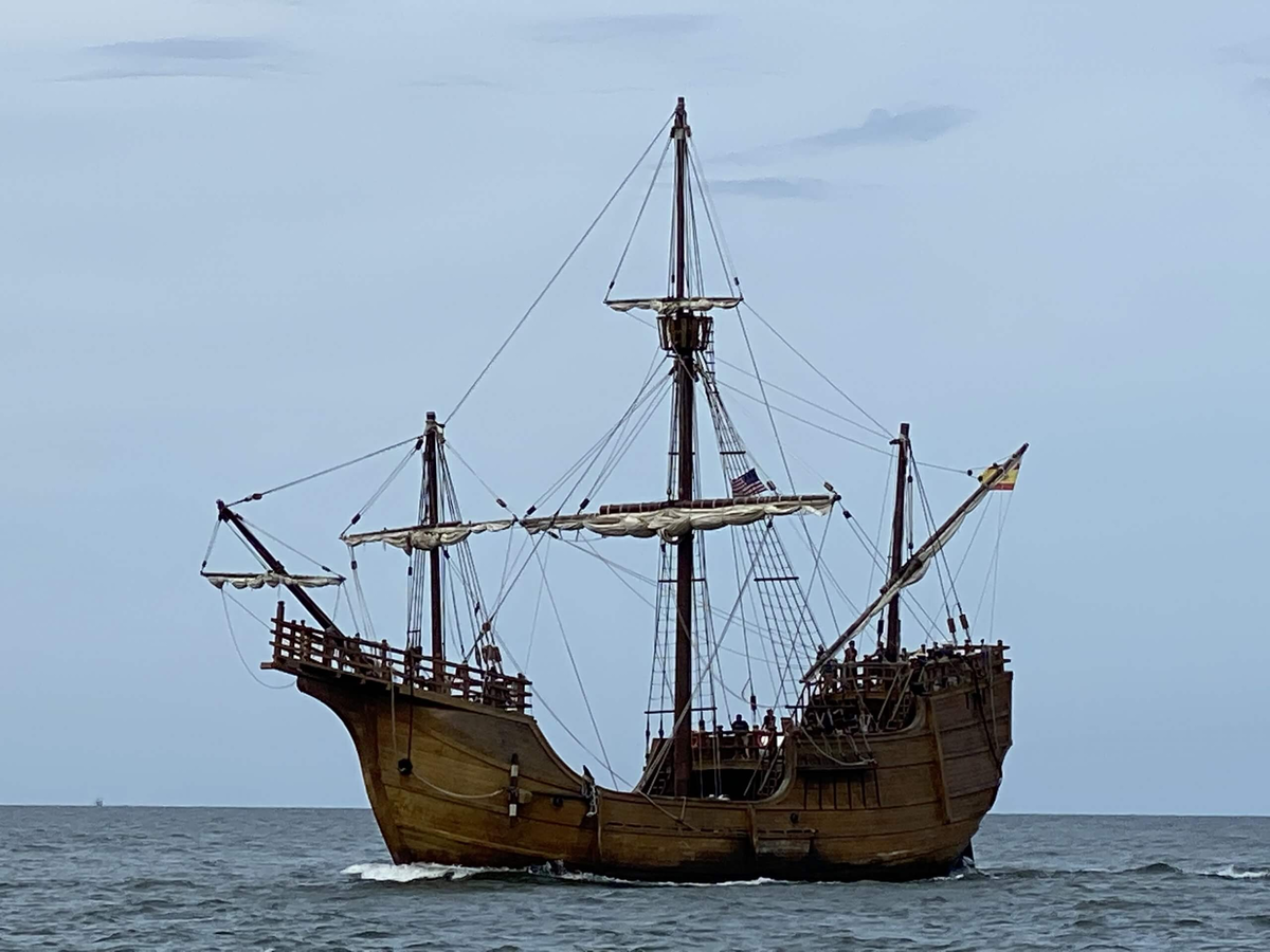 Настоящее ее имя было «Ла-Гальега» («Галисийка»), и она была не каравеллой, а караккой, или, как говорили испанцы, «нао». Это был типичный торговый корабль — пузатый, тяжелый, неповоротливый. Его главной задачей было не резать волны, а перевозить как можно больше груза в своем объемистом трюме. Длиной около 25 метров и водоизмещением под 100 тонн, он был самым крупным и самым медленным судном в эскадре Колумба. Адмирал, будучи опытным моряком, прекрасно видел все его недостатки, но выбора не было. Владелец судна, Хуан де ла Коса, согласился сдать его в аренду только при условии, что сам пойдет на нем в качестве капитана. Колумбу пришлось согласиться и поднять свой адмиральский флаг на этой неуклюжей «баржанке».