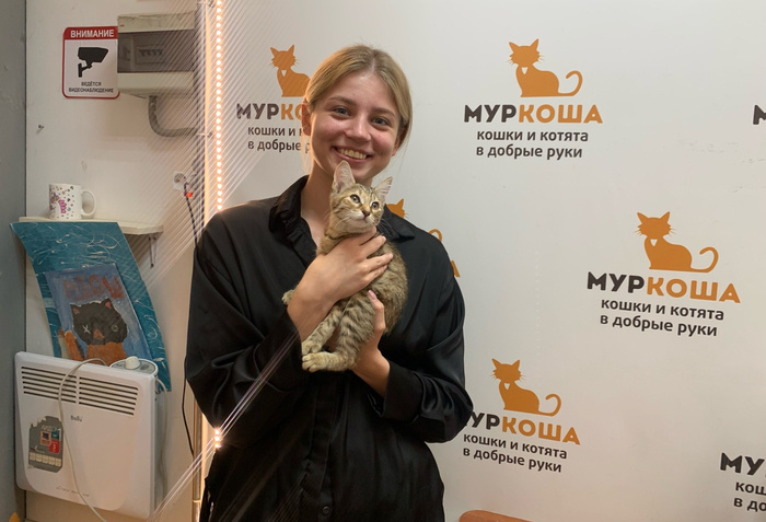 В объятиях новой хозяйки 5-летний котик Добрячок умчал в яркое, полное приключений и прекрас домашнее будущее! Он будет жить в семье, где уже живет выпускница приюта – кошечка Гвинет!