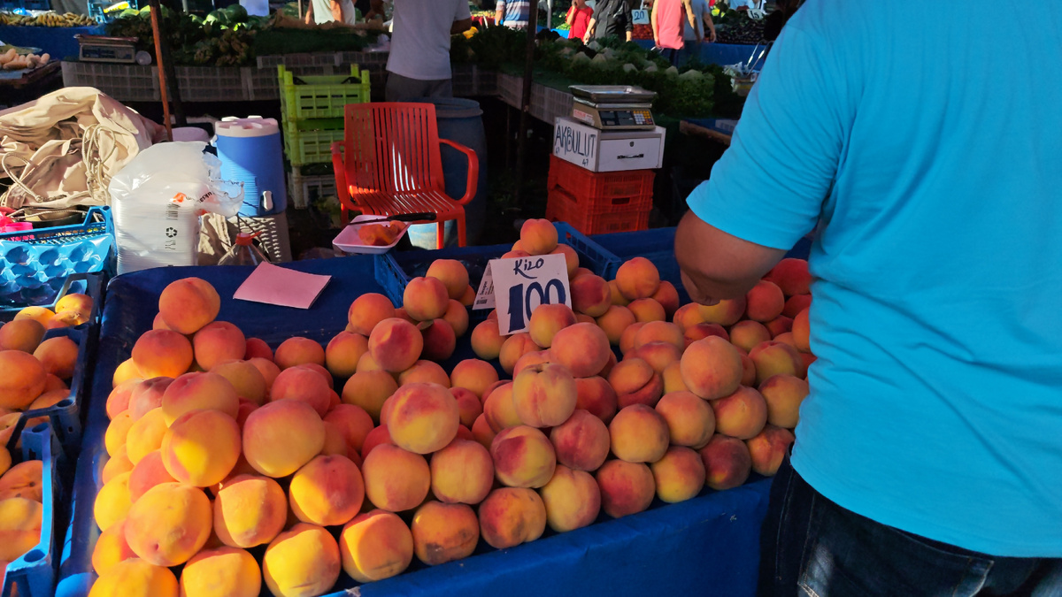 В этот раз базар щедро выложил передо мной целые горы персиков — от 60 лир за кило (это примерно $1,5) и до 100 лир очень больших ароматных, мягких и налитых солнцем. Но даже те, что поменьше и дешевле тоже сладкие и ароматные - дают попробовать, чтобы вы точно захотели купить.