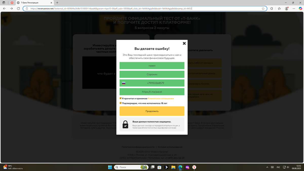 Поэтому не спешите сразу начать заполнять анкету которую вам предлагают, сперва оцените все риски, а после этого постарайтесь изучить содержимое и посмотрите какие значки используются и каких фирм! Не поленитесь сперва пройти по всем разделам сайта и посмотреть что написано в том или ином раздели, ведь там может быть к примеру предложение от Т-банка , а пользовательское соглашение от компаний например Инвестиций-Капитал, это уже первый звоночек не совпадения !