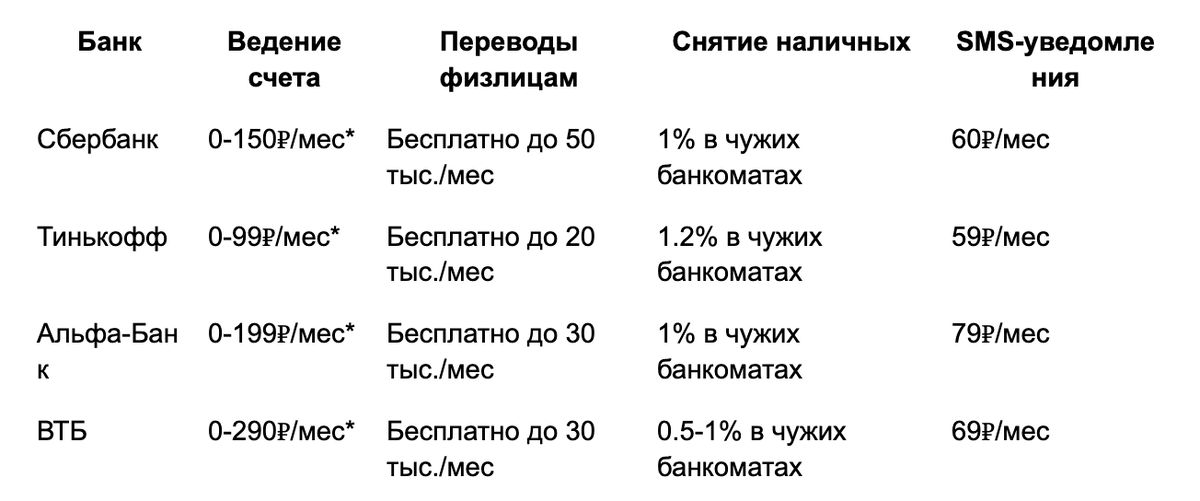 Важно: Все банки делают обслуживание бесплатным при соблюдении простых условий. Но штрафы за их нарушение различаются в разы.