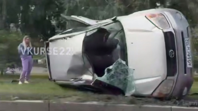 Автомобиль перевернулся на бок на Павловском тракте в Барнауле