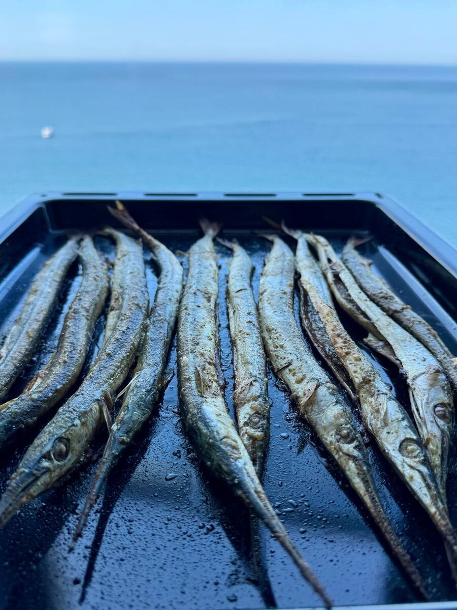 🔤🔤🔤🔤🔤🔤. Черноморский сарган. Друзья, мы с супругой, вырвались на пару дней на море. В Анапу. Утром сходили на рынок и купили разной рыбки. Решили начать с саргана, или как его ещё называют - Иглы. Эта рыба настолько богата фосфором, что малочисленные кости у неё зеленоватого цвета. По вкусу отдалённо напоминает скумбрию. Ингредиенты: 1️⃣ Сарган 2️⃣ Чёрный перец - 1 ч.л 3️⃣ Масло растительное - 2 ст.л 4️⃣ Мука - 2 ст.л с горкой 5️⃣ Соль - 1 ст.л Приготовление: 1. Рыбу выпотрошить и промыть 2. Сложить в кастрюльку с крышкой, полить маслом, насыпать сухие ингредиенты. 3. Закрыть крышку и несколько раз интенсивно встряхнуть, чтобы получившаяся смесь обволокла рыбу 4. Запечь в разогретой до 200 градусов духовке 15 минут 5. При подаче сбрызнуть соком лайма или лимона Ангела за трапезой! Ваш канал ПП - Православное Питание - канал о Пище, не только телесной, но и духовной Как искать рецепты? Жми, читай, выбирай ⏬️ Поиск рецептов на канале #пост #горячее #смаслом #рыба #сарган #ду