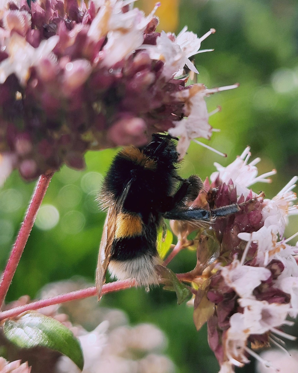 Не первый раз замечаю, что, когда неожиданно начинается дождь, шмели никуда не улетают, а просто прячутся под листьями и цветами, чтобы его переждать. Как только выглядывает солнце, шмели выбираются из своих укрытий, самые первые занимают места на цветах и продолжают собирать пыльцу и нектар. Дождь внезапно застал нас на даче, но быстро закончился. Выглянуло солнце, и появилась удачная возможность понаблюдать за поведением шмелей, выползающих из-под своих цветочных зонтиков. Предлагаю и вам посмотреть на этих милых пушистиков на цветах садовой душицы