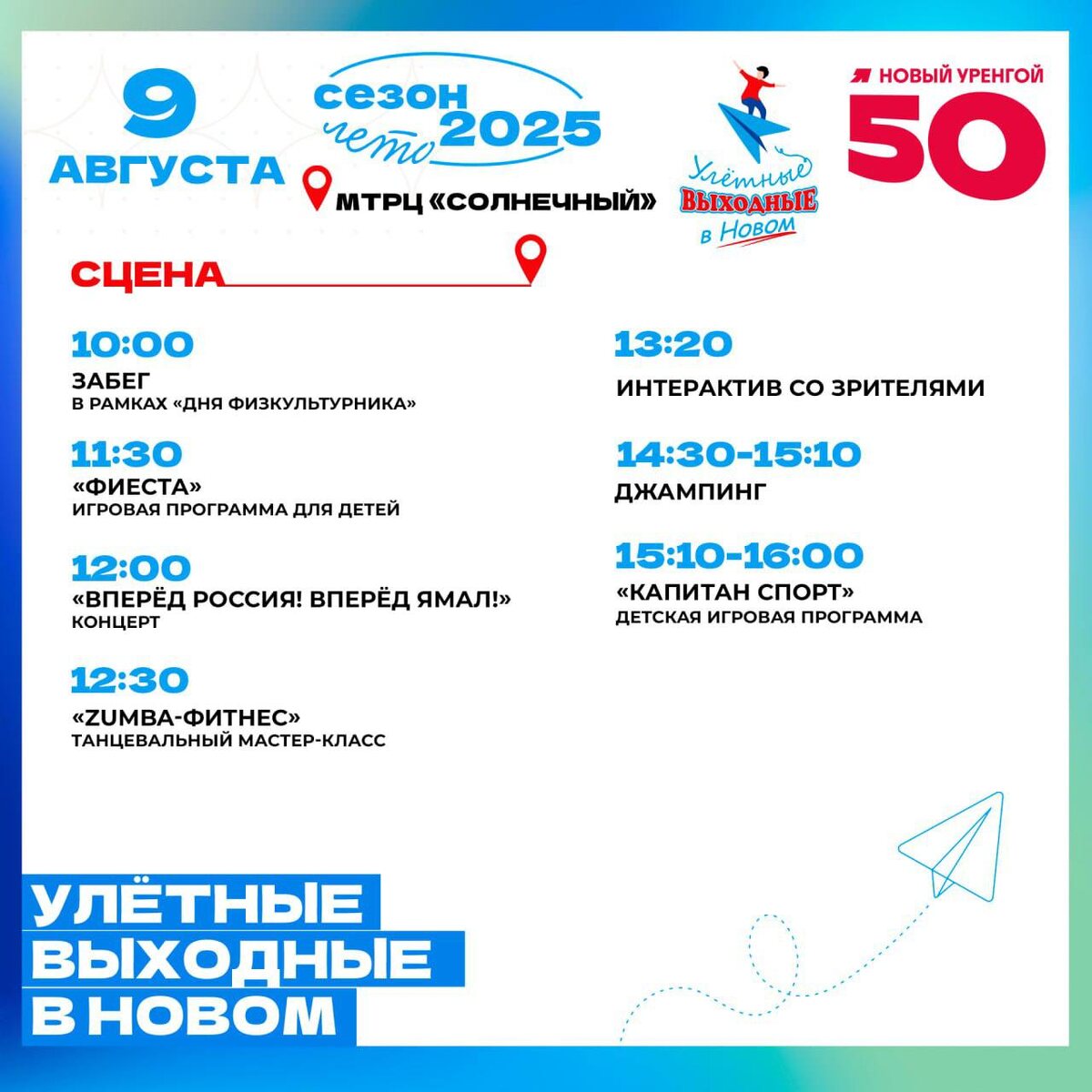 «Улётные выходные» в День физкультурника! Сегодня у МТРЦ «Солнечный» вас ждут концерт, джампинг, игровые программы, мастер‑классы и многое другое — подробности в карточках ⬆️. Приходите вместе с родными и друзьями — отметим самый спортивный выходной августа весело и улётно! 📸: НУР. Официально ❤️ Импульс Севера