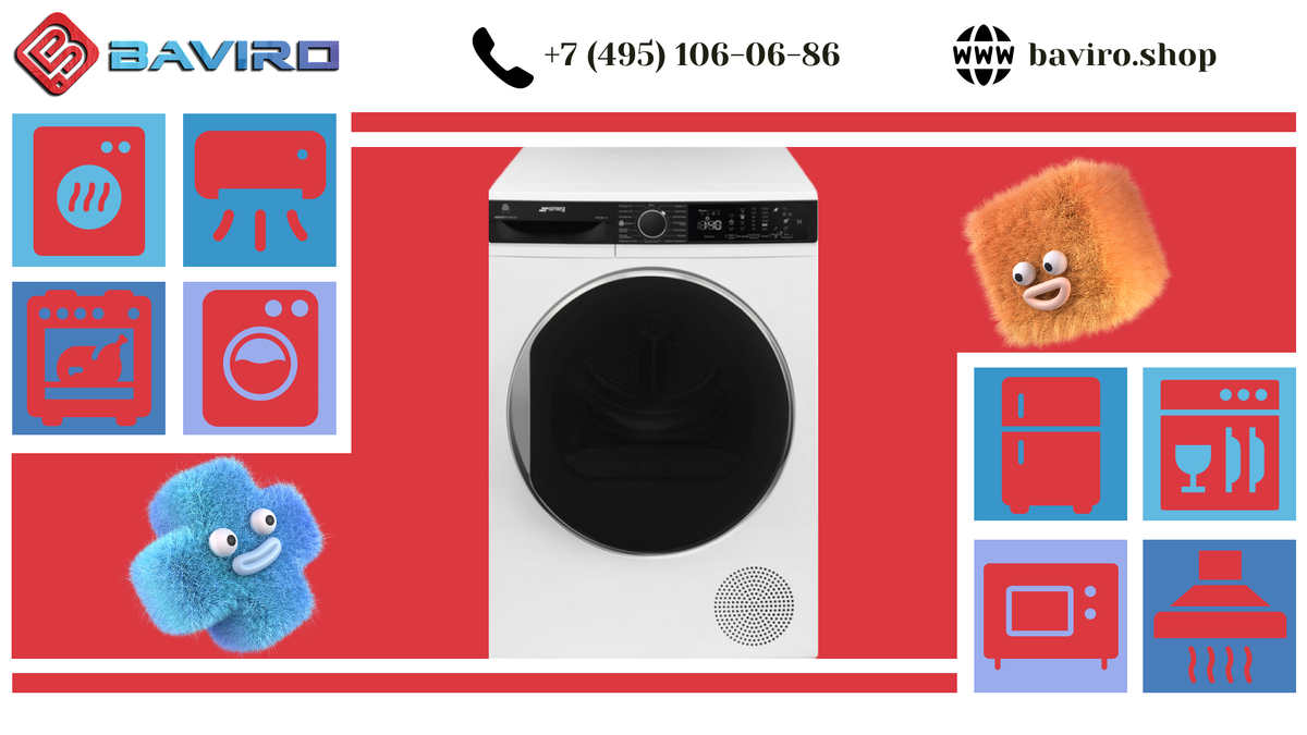 Итальянский бренд Smeg известен своими элегантными и технологичными решениями для дома. Сушильная машина DT393RU4 — не исключение: она сочетает вместительность, энергоэффективность и фирменный дизайн. Разберёмся, кому подойдёт эта модель и стоит ли её покупать. 🔹 Размеры: 84.5 × 59.6 × 60.9 см — стандартная узкая модель (глубина 60.9 см с учётом дверцы).