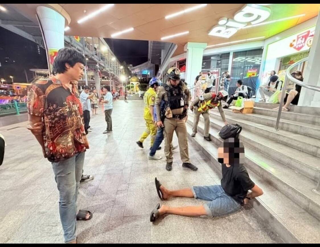 В Бангкоке охранник ТЦ пытался поджечь туристов У торгового центра на перекрёстке Ратчапрасонг 30-летний таец облил двух малайзийцев бензином и поджёг. Пострадавшие получили ожоги лица и тела, их срочно доставили в больницу. 👮♂️ Нападавшего задержали на месте. Он объяснил поступок стрессом, безработицей и голодом. Полиция подтвердила: наркотиков не было, но психика не в порядке. Туристы уже в стабильном состоянии. 🌴 Прислать новость | Подписаться | Смотреть другие новости