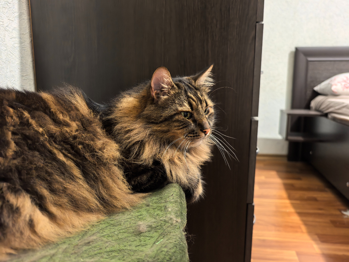 Всем привет! С вами Кузя Кусалочкин (он же царь Кузьма I). Сегодня я расскажу, как мои хозяева ходили в подвал, а ещё как наша квартира опять стала 2-комнатной. Утро началось стандартно. Проснулась хозяйка, пошла на кухню. Ну а я за ней. Мне положили паштетик, но есть я его не стал. Просто ночью неплохо поел, был не голодный. Хозяйка тарелку спрятала, и паштетик я ел позже. На новые каналы я сейчас не подписываюсь. Дружить, забежать в гости времени нет. А вот лапикюр мне сделали. Хозяин жаловался, что уж больно длинные и царапающиеся у меня когти. Лапикюр я неплохо перенёс и продолжал лежать на этом стуле: Утром хозяин уехал в тренажёрку, а хозяйка занималась своими делами. Решено было, что как только хозяин приедет домой, они с хозяйкой пойдут в подвал искать блох. Дальше рассказываю, как было дело со слов хозяев (как они мне рассказали, я же с ними не ходил, не видел). Почему-то опять в подвале было темно и страшно (у хозяйки уже была попытка сходить одной в подвал, но она побояла