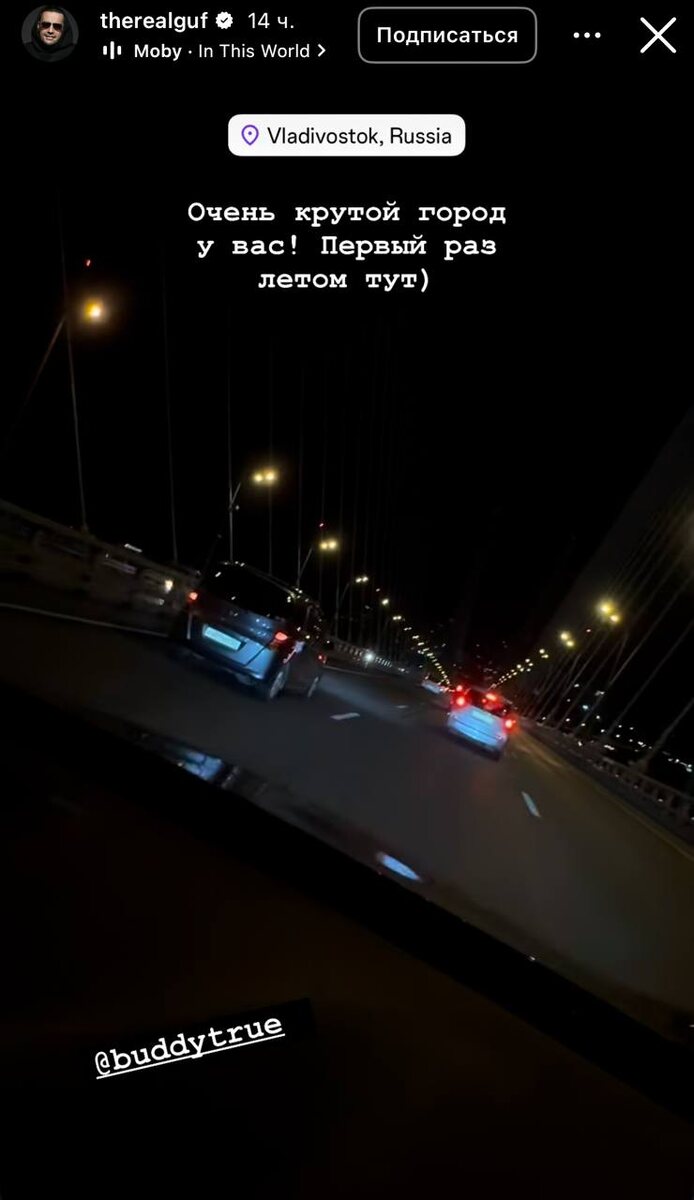 Рэп-исполнитель Guf (настоящее имя Алексей Долматов — Прим. Ред.) прилетел во Владивосток, чтобы дать прощальный концерт. В своих социальных сетях он назвал город очень крутым. Долматов, судя по истории публикаций, побывал уже на острове Русский и прокатился по ночному городу. Его концерт состоится уже сегодня, 9 августа, в «Фетисов арене». Ожидаемо, что билетов не осталось, по данным касс, продажи закрыли еще в четверг. Напомним, что зал вмещает в себя около 7 тысяч человек, не считая места на танцполе. Этим туром Долматов планирует попрощаться не только с карьерой рэпера, но и со всем своим музыкальным миром. Об этом он заявил в феврале 2025 года. Фото: therealguf / Instagram (экстремистская организация, деятельность запрещена на территории РФ) 🟥 Подписаться | Предложить новость