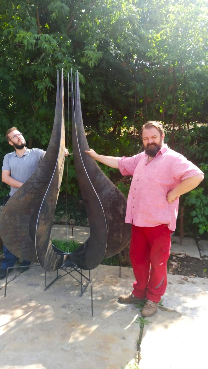 Вдогонку к посту про арт объект "Оберег"👍 Сфотала парней для масштабу))) Всё таки с человеками в кадре размеры изделия очевидны. Вещь большая и эффектная! Заказать такой можно тут https://qgarden.ru/product/art-obekt-obereg