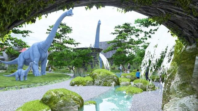 Уже работающая площадка палеонтологии, где дети увлеченно раскапывают окаменелости динозавров, тоже преобразится. Для дополнительной тени ее окружат пещеры и гроты.