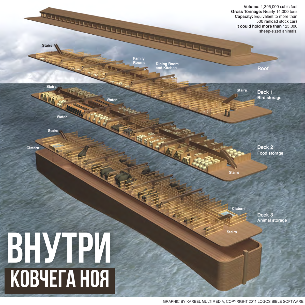 В Библии говорится, что Ноев ковчег состоял из 3 уровней (Быт 6:16)