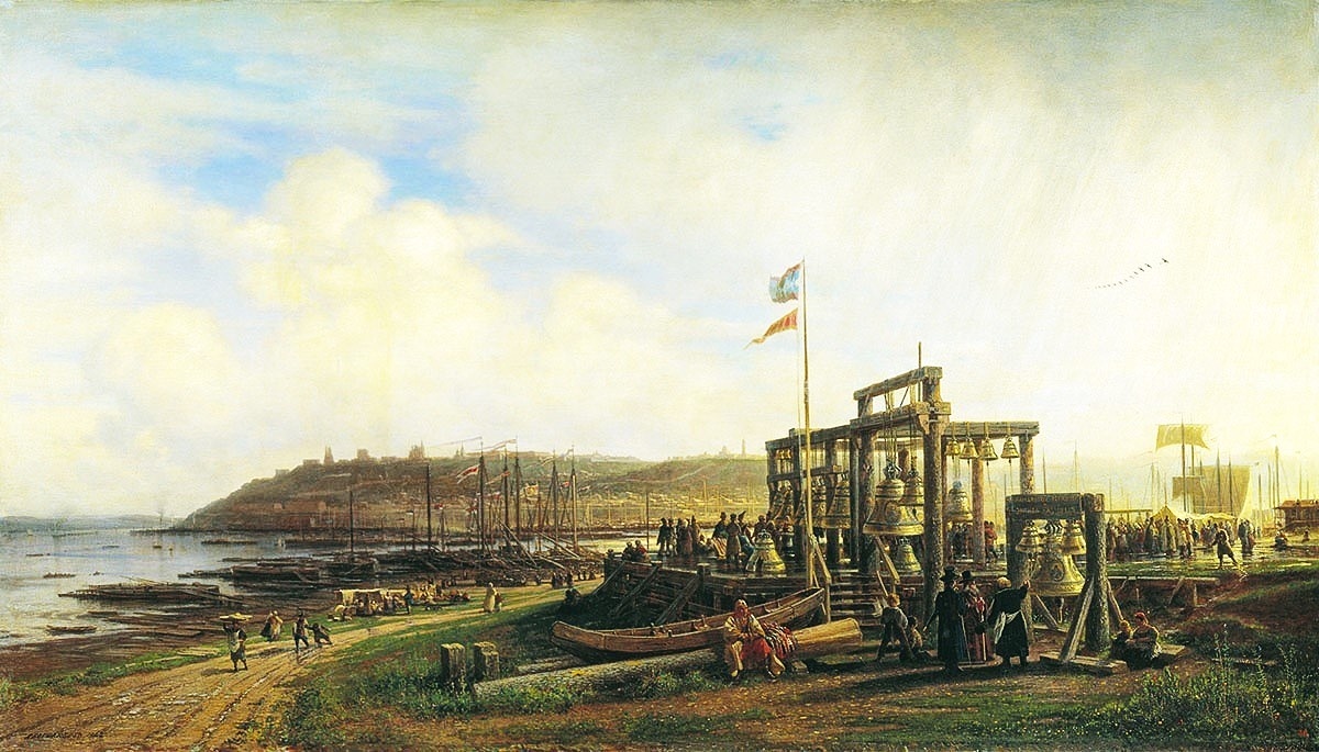 Можно ли в двадцать седьмой раз автору, будь он хоть трижды гениален, предваряя чей-то текст, оставаться хоть сколь-нибудь оригинальным? Этакий, знаете ли, тамада, у которого на любой случай из жизни заготовлено с десяток верных тостов... Весьма сомневаюсь. К тому же памятна мне с детства фраза одного из персонажей знаменитой тетралогии Гарина-Михайловского: "До такой гадости… до такой пошлости может довести человека желанье вечно оригинальничать". Ну, так и не станем тянуть заношенное одеяльце на себя, а лучше сразу последуем за де Кюстином, прибывшим - если кто помнит - в Нижний Новгород, и даже умудрившимся... им восхититься! Правда, с первого взгляда. Мы уже помним, что "второй" и "последующий" взгляды маркиза способны в прах разметать первичные его впечатления. Приведенная ниже иллюстрация картины П.П.Верещагина, в отличие от верхней - Боголюбова, хоть и предательски отсвечивает на переднем плане облаченьями, не свойственными 1839 году ("Что ж ты, собрат, не подобно эпохе оделся?" (С)), но, как мне показалось, весьма точно передает самый дух знаменитой нижегородской ярмарки.