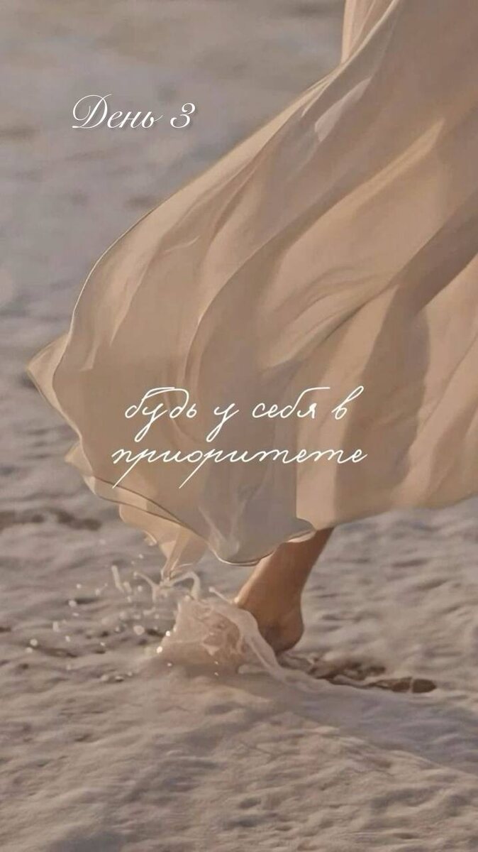 ✨💖 День 3. Любовь к себе — это глагол 💖✨ Доброе утро, красавицы! 🌸 Сегодня мы перестаём откладывать любовь к себе «на потом». Любовь — это не только чувство. Любовь — это действия. 📜 Вспомни свой список «Если бы я себя любила, то…» С сегодняшнего дня ты выполняешь по 3 пункта каждый день. Не важно, простые это вещи или большие мечты — просто начни. Если желание дорогостоящее или требует времени — делай маленькие шаги. Сегодня — одно действие. Завтра — ещё одно. Так ты каждый день будешь приближаться к своей мечте. 💎 Задание 1. Звезда по имени Я Возьми ручку и бумагу. Напиши всё, что тебе нравится в себе: 🌟 твои качества 🌟 твои достижения 🌟 моменты, когда ты собой гордилась Пиши до тех пор, пока внутри не засияет та самая уверенная, красивая, неповторимая Ты. А теперь — внимание! Дипломы, награды, спортивные победы, похвала начальства — это всё прекрасно, но не это делает тебя ценной. Настоящая ценность — в твоей улыбке, которая делает день светлее. В твоей способности з