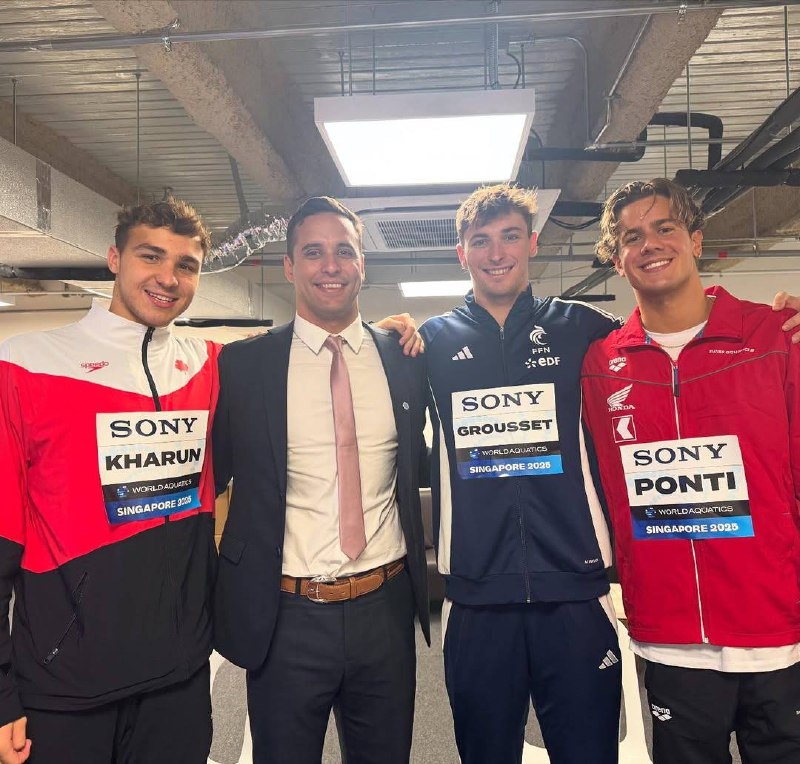 Chad Le Clos приехал на чемпионат мира не как спортсмен. У Le Clos небольшая пауза в выступлениях о которой мы писали ранее. Но на фото с призерами чемпионата мира в программе баттом, Chad все-таки есть. 📸 Chad Le Clos