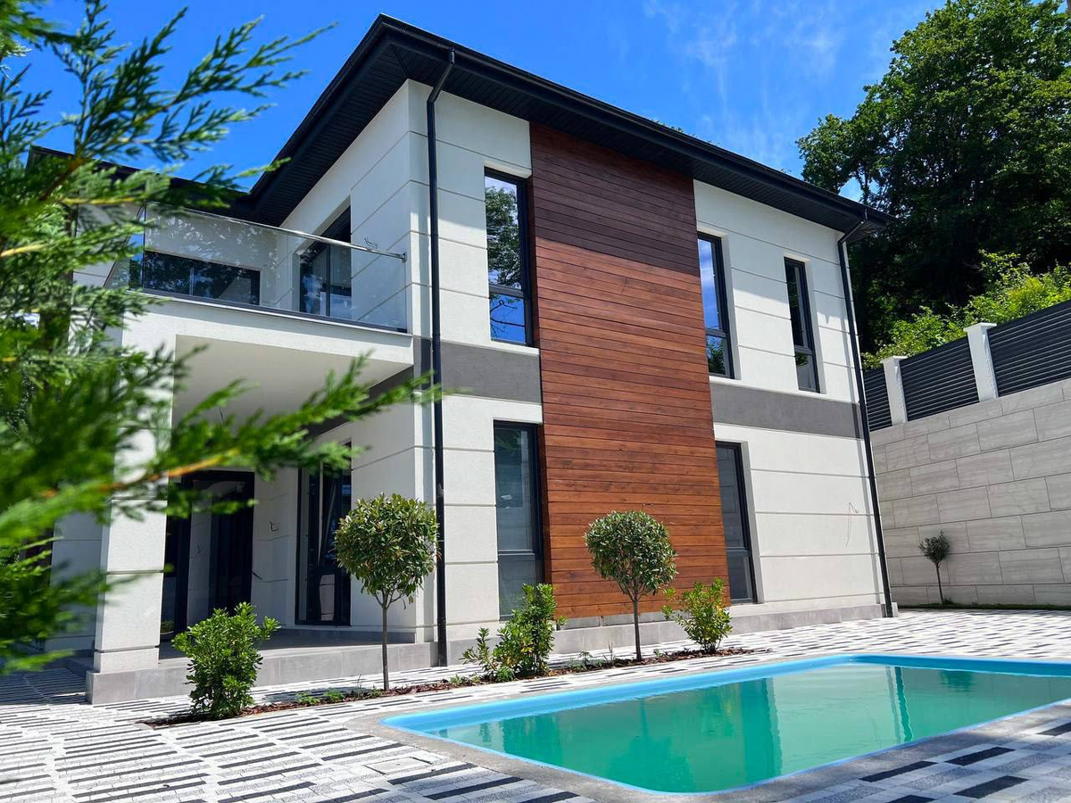Просторные 190 м² на двух этажах: 3 спальни, большая кухня-гостиная, светлые комнаты с панорамными окнами. Дом построен из монолита, с дизайнерским ремонтом, дорогой мебелью и техникой.