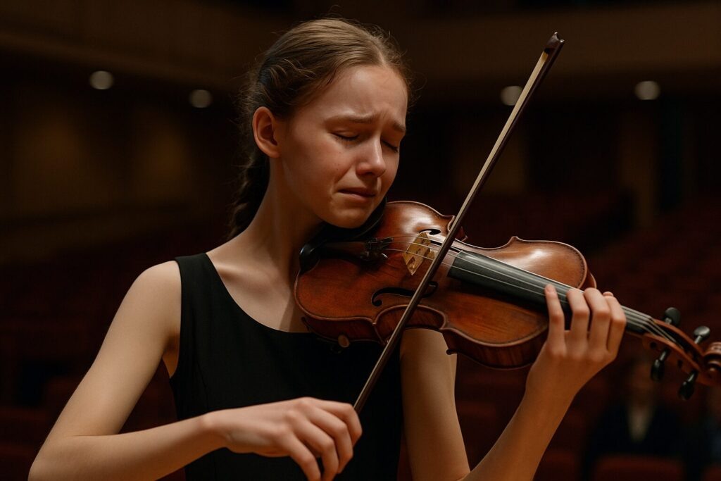 «Спокойно, это просто музыка. Та самая, которую я играю каждый день. Забудь про жюри, про маму, про деньги. Есть только ты и скрипка.»