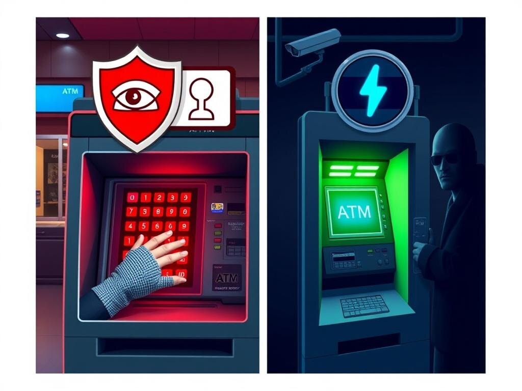 PIN — второй ключ к деньгам. Его добывают камерами с объективом как игольное ушко, замаскированными под рекламную рамку, планку над клавиатурой, фальш-панель. Другой вариант — накладная клавиатура: поверх настоящей кладут тонкую клавиатуру-двойник, которая запоминает нажатия. Для пользователя ход всё тот же, деньги выдаются, но комбинация уже записана.