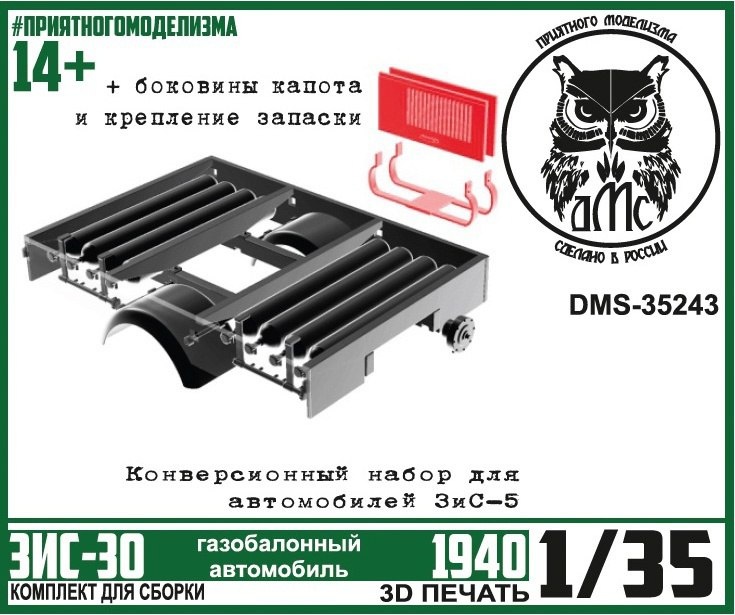 Кировская ДМС (denisssmodels) выпустила на 3D-принтере конверсионный набор для постройки модели газобаллонного ЗИС-30 из ЗИС-5 в масштабе 1/35.
