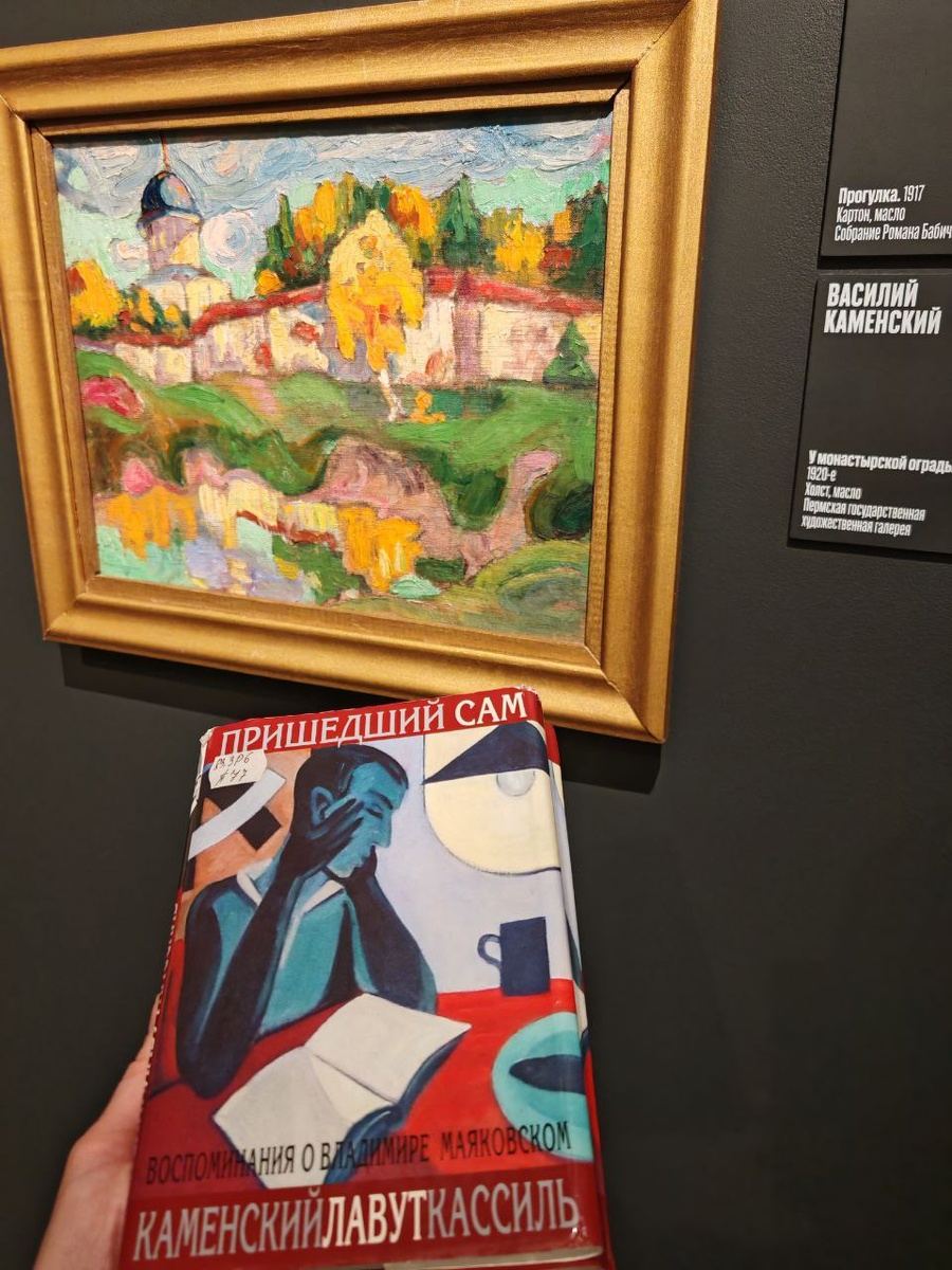 Сегодня, 9 августа, отмечается День книголюбов, - надеюсь, что наш с вами! 🥂 Внезапно на днях оказалась на выставке «Русские дикие». 📚 Случайно - с книгой про Маяковского. И что я на выставке встречаю?... Это работы одного из авторов воспоминаний о Маяковском, Василия Каменского, ну и другого - "дикого", но симпатичного - Давида Бурлюка. А ещё Лентулов и другие герои книги практически были со мной на экскурсии. 😉 (Почувствуйте себя героем фильма "Игры разума") - Я художник, поэт, теоретик, педагог. Моё дело идёт блестяще. Вы сами видите - вся комната завалена написанными картинами, но их никто не покупает, несмотря на самые общедоступные цены, ибо я беру лишь за холст, подрамник, краски и три рубля, как хороший маляр, за каждый день работы. Я не раскра Добршиваю фотографий хорошеньких женщин и потому беден и не имею меценатов. И наплевать. В свое время не лучше меня жили боги живописи Гоген, Ван Гог, Сезанн. К сожалению, слава и деньги обычно приходят после смерти. Бурлюковская о