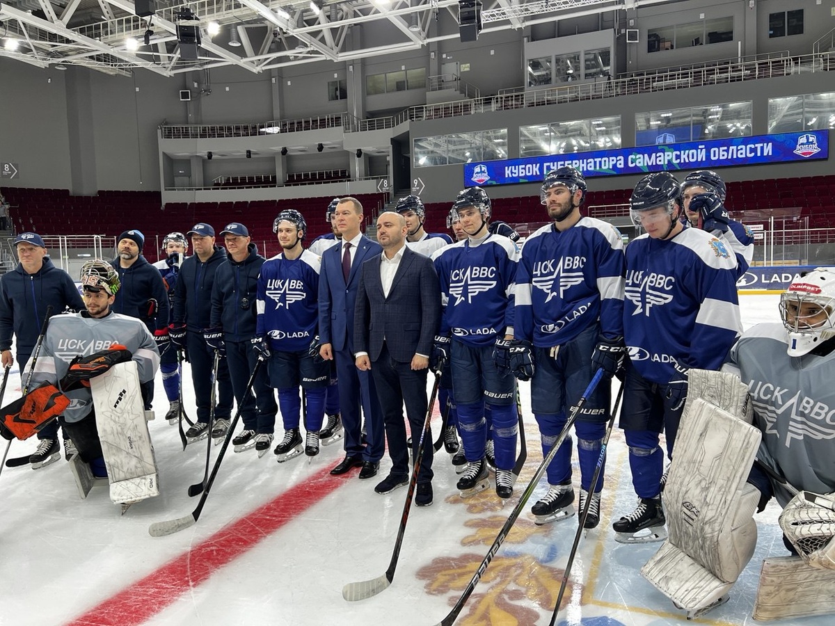 🔻Министр спорта РФ Михаил Дегтярев и губернатор Самарской области Вячеслав Федорищев пообщались с хоккеистами клуба «ЦСК ВВС»