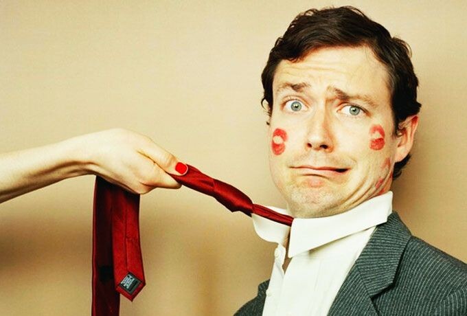 На лице были следы красной помады, а на белоснежном воротнике рубашки алели предательские отпечатки поцелуев. Он смахивал на жалкого актера из дешевого балагана.