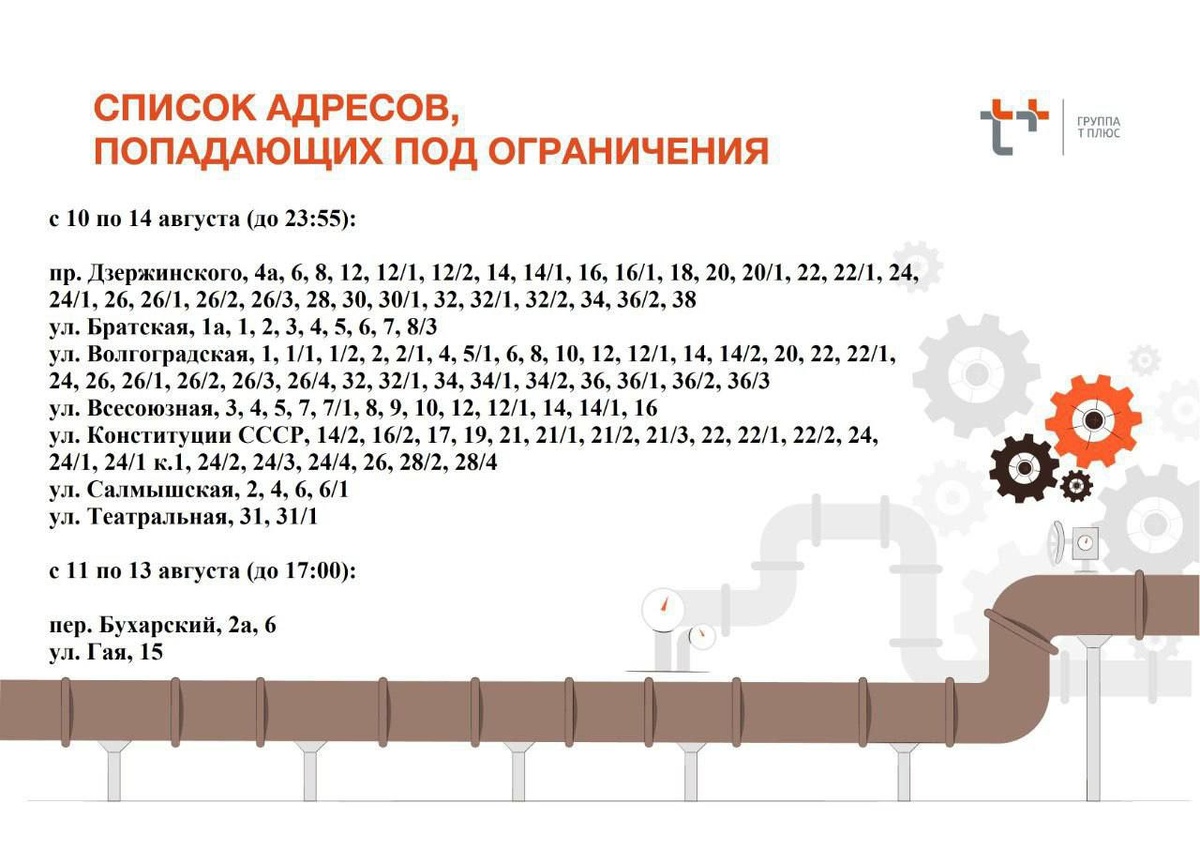 Список улиц, на которых отключат горячую воду в Оренбурге с 10 по 16 августа В областном центре продолжаются опрессовки: какие районы они затронут на этот раз, указаны в карточках.