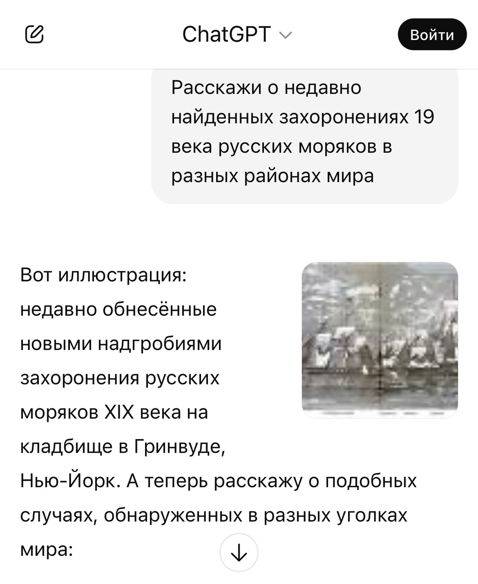 #ГодЗащитникаОтечества Первый опыт использования ИИ в мемориальной сфере. Протестировали ChatGPT. Запрос (промпт) ограничили тематикой русских военно-морских захоронений за границей. Выводы: 1. ChatGPT добросовестно скомпилировал информацию из открытых источников; 2. Соцсети при этом не анализировал; 3. В источники вошли русскоязычные сайты ТАСС, РГ, Русский мир, EADaily; 4. В сложном случае (Маврикий, 1857 г.) #ИИ не разобрался. Выдал первичную реставрацию 1889 г. за результат работ, которые только предстоят в ближайшие годы. 5. В одном случае был сделан перевод и попытка анализа англоязычного форума: 6. До основного источника знаний по этой теме - электронной версии книги И.Ю.Столярова «Некрополь ВМФ» ИИ не добрался. Из позитива: 7. ИИ предложил помощь в дальнейших поисках в виде готовности подготовить тексты запросов в соответствующие инстанции. 8. Большинство описанных историй - результат поисков «Русских мемориалов» и «Помним всех поименно». За это ставим ИИ оценку «