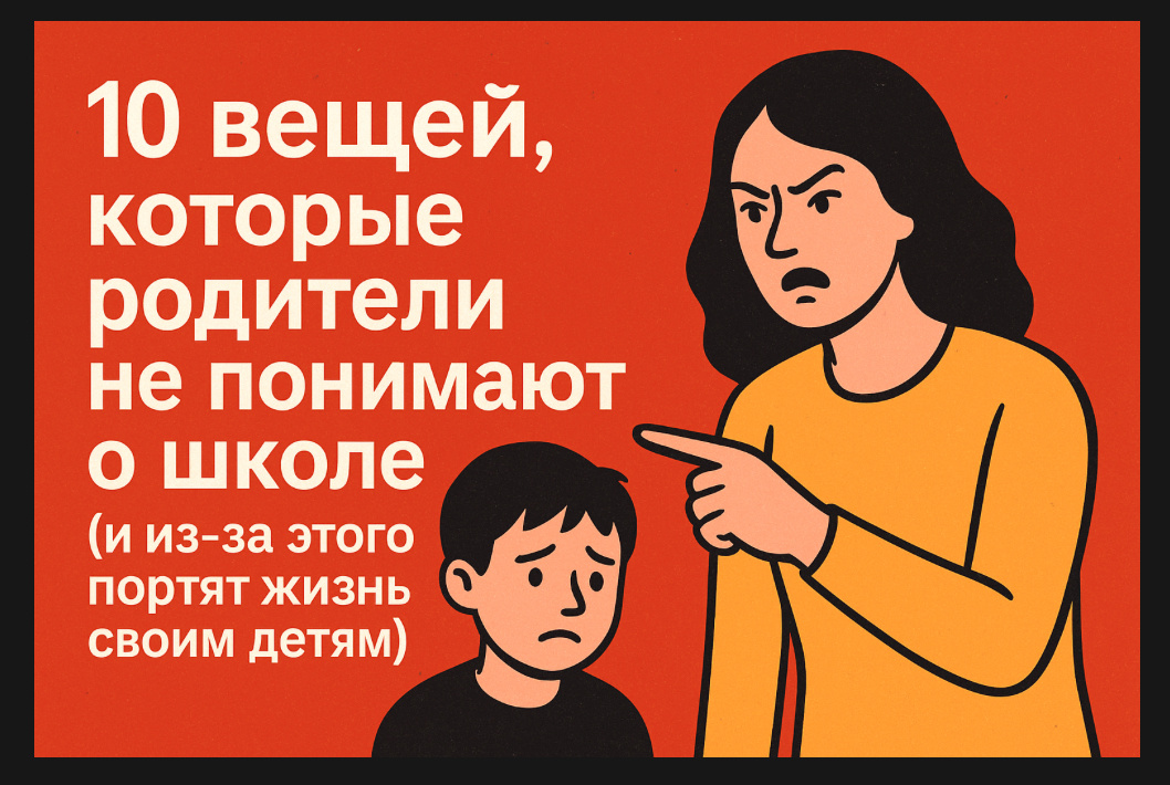 “Мы просто хотим как лучше…” — говорят родители. Но иногда это «лучше» превращается для ребёнка в дополнительную нагрузку, стресс и нежелание идти в школу. Я работаю учителем уже несколько лет и каждый раз убеждаюсь: родители искренне любят своих детей, но часто видят школу только снаружи. А там, внутри, жизнь устроена немного иначе, чем кажется на родительских собраниях. Сегодня расскажу о десяти вещах, которые родители часто упускают — и как это отражается на их же детях. Многие родители воспринимают отметку как печать «умный/глупый» или «успешный/неудачник». На деле, оценка — это моментальный снимок конкретной работы. Сегодня — 3, завтра — 5, а через неделю снова 3. Дети, которым дома устраивают допрос по каждой «четвёрке», начинают бояться ошибок и… перестают учиться с интересом. Иногда я получаю тетради, где почерк явно не детский. Да, красиво, ровно, но это не работа ребёнка. Проблема в том, что таким образом родитель снимает с ребёнка возможность научиться самому. И на контрольн
