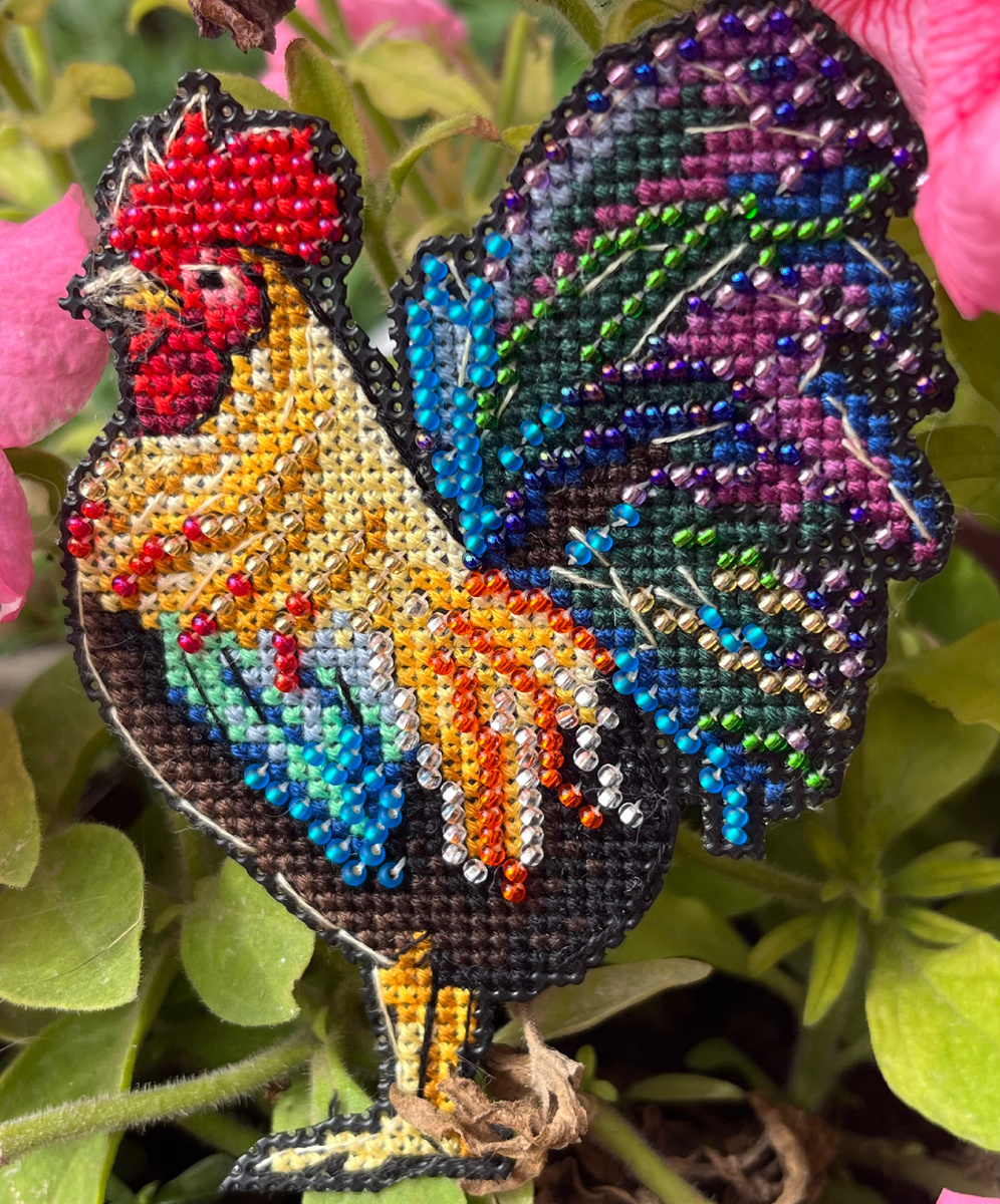 Желтый бисер был заменен на золото, белый - на серебро. Ну вот таким мне виделся красавец петух).