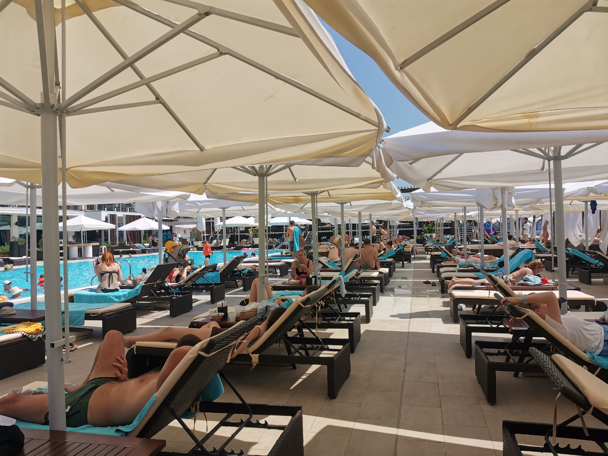 Затем мы брали шезлонги, под зонтом, очень удобно, и стоЯт у бассейна. Мягкие матрасы, спинки поднимаются.