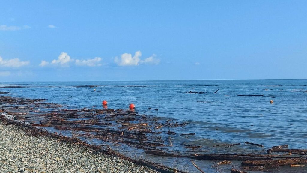 Туристы убирают бревна и мусор с пляжей Сириуса после шторма