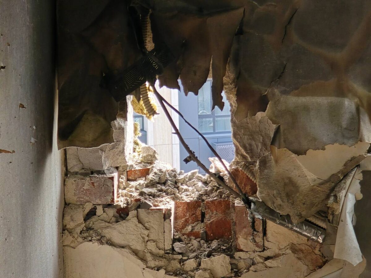 «Посетил многоквартирный дом на Левобережной, поврежденный из-за атаки БПЛА. Сдетонировавший на уровне 18 этажа беспилотник вызвал пожар в нежилой квартире 20-этажного жилого дома», — написал Слюсарь в Телеграм-канале. Сообщается, что в многоэтажном доме повреждены две квартиры. Стекла выбило в окнах с 15 по 20 этажи. Как ранее стало известно, локально ввели режим чрезвычайной ситуации. Врио губернатора также поговорил с жильцами пострадавших квартир. Кроме того, застройщик обещает вставить выбитые стекла и привести в порядок места общего пользования до 15 августа включительно в пострадавшем доме. А до 22 августа планируют завершить фасадные работы. Глава региона подчеркнул, что комиссия должна оперативно зафиксировать причиненный ущерб, чтобы его возместили с помощью единовременных выплат. Уже заменили двери в одной из пострадавших квартир, выполняются работы по демонтажу поврежденной кладки и сразу приступают к монтажу новой. Работы над восстановлением фасада также идут.