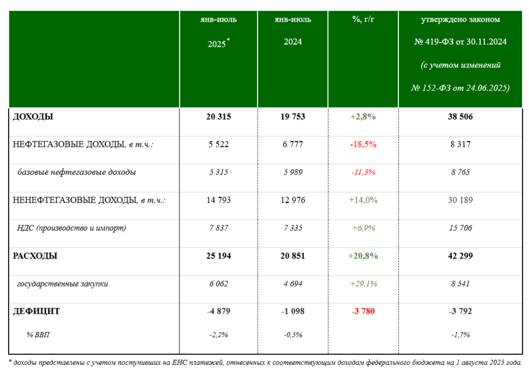 Инфляция в начале августа — третья дефляционная неделя подряд радует ЦБ, но дефицит бюджета расширяется, и это проинфляционный фактор.