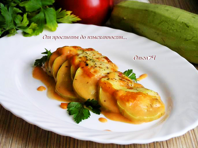 Всем доброго дня! Нежное и вкусное сезонное блюдо для любителей кабачков. Можно подавать как закуску, основное блюдо или гарнир. Для разнообразия половину молока классического соуса "Бешамель" я заменила на томатный сок, отсюда и название. Попробуйте! Ингредиенты: 2 молодых кабачка