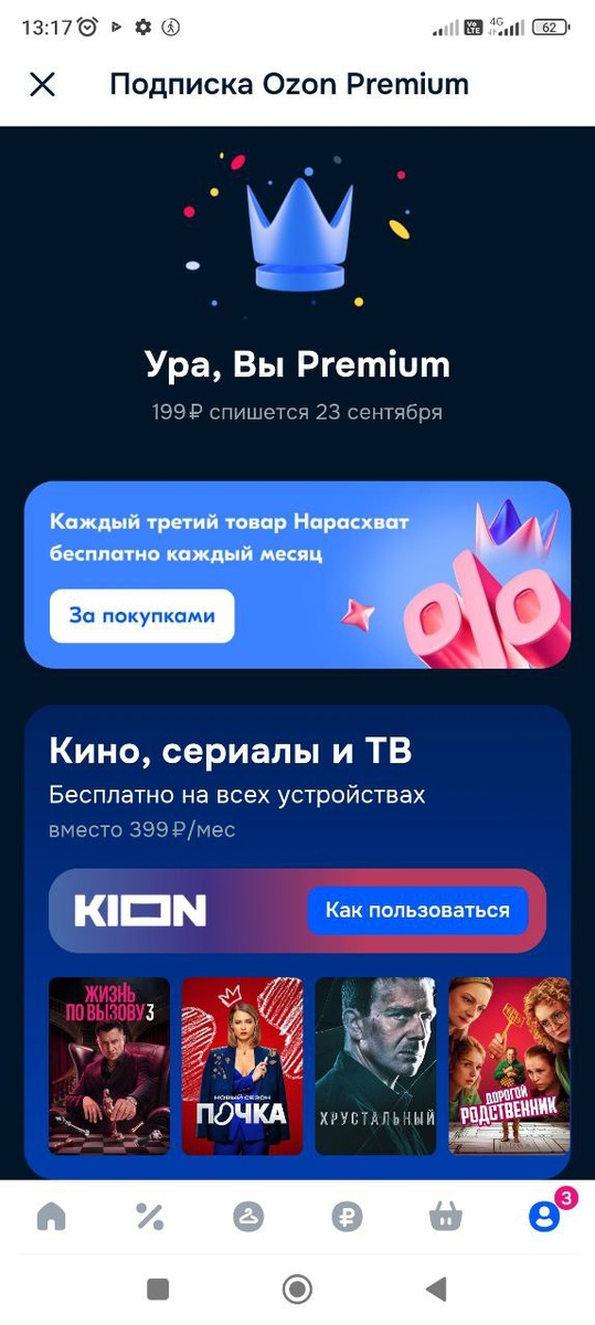 Озон снова порадовал меня выгодным предложением: теперь у меня есть бесплатная подписка озон премиум на месяц