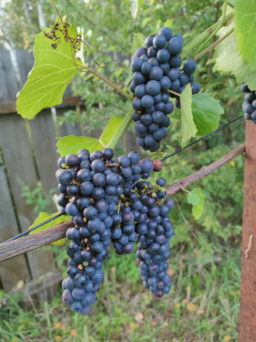 Целый куст, этой формы, мне выкопал и подарил Иван Дмитриевичу Луковников. Многим из нас он щедро помогал в начале нашего , виноградного пути. Скорее всего эта форма, была пронумерована как "1-9-5", менее вероятно "1-9-8". Этот куст всегда окрашивается первым, и этот год не исключение. Как видите птицы уже начали работать, но ещё не дрозды, скорее воробьи. И осы тут как тут. Укрыл сеткой. Немного опоздал конечно С апреля, куст был подвязан на шпалере. Я его пытался укрыть от заморозков, но не получилось. Так что в мае, центральные почки пошедшие в рост, погибли. Но тем не менее куст, пусть не очень большой, но урожай дал. Посмотрите из какойдревесины и как он способен выбрасывать гроздь. Микровинификации уже делал. Чудес не бывает, амурец, есть амурец. Буду делать или розовое, или "глю-глю", 2-3 дня брожения на мезге.