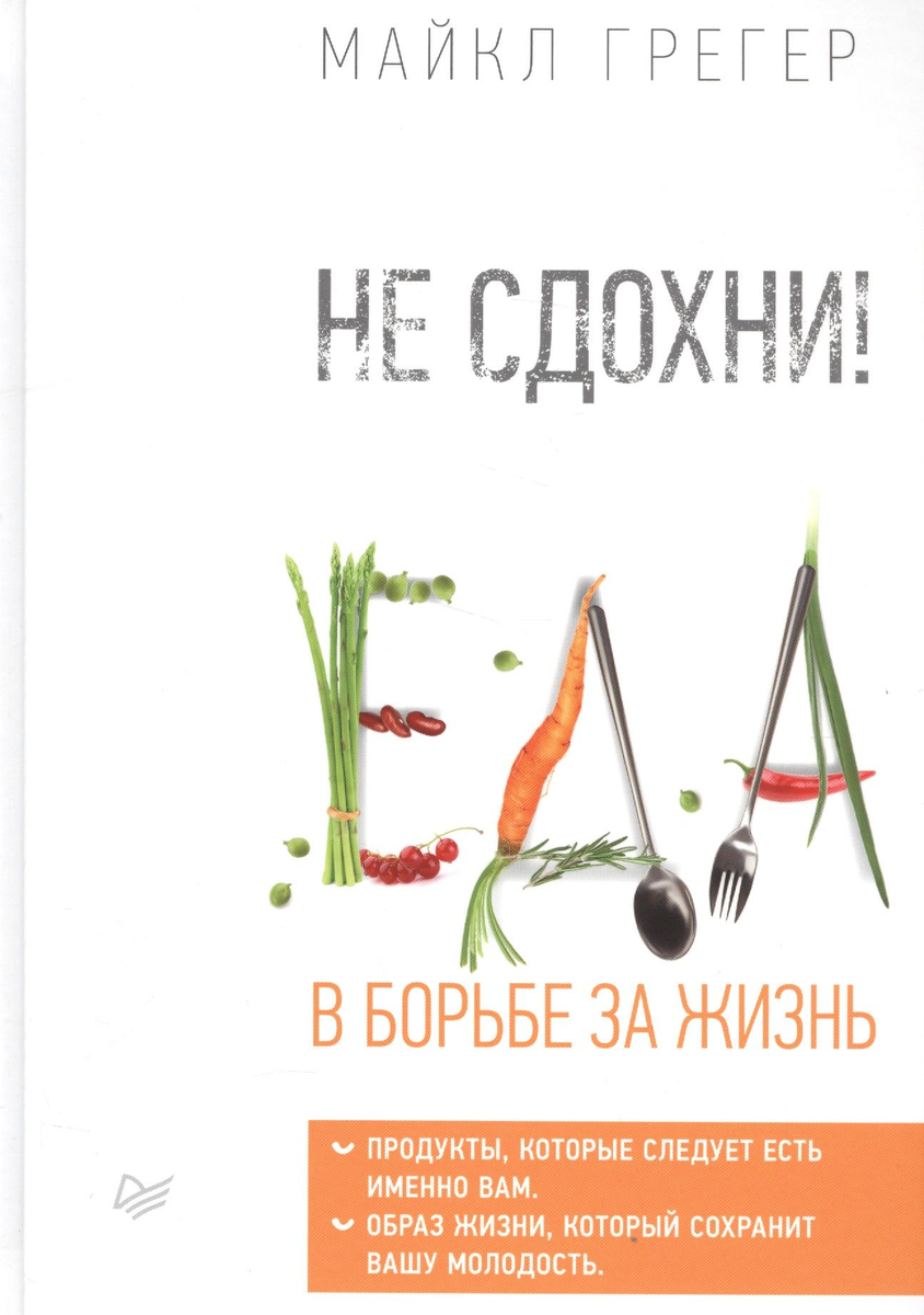 Майкл Грегер, доктор медицины и основатель NutritionFacts.org, в своей книге How Not to Die: Discover the Foods Scientifically Proven to Prevent and Reverse Disease (2015, в русском переводе «Как не умереть: Откройте продукты, научно доказанные для предотвращения и лечения болезней») анализирует 15 ведущих причин смерти в США и показывает, как цельное растительное питание может их предотвратить или обратить. Основываясь на тысячах исследований, Грегер предлагает «Ежедневную дюжину» — список продуктов для оптимального здоровья. Книга сочетает науку, практичные советы и рецепты, подчёркивая, что 80% хронических болезней можно избежать через диету. Это руководство для тех, кто хочет жить дольше, здоровее и энергичнее, меняя питание.