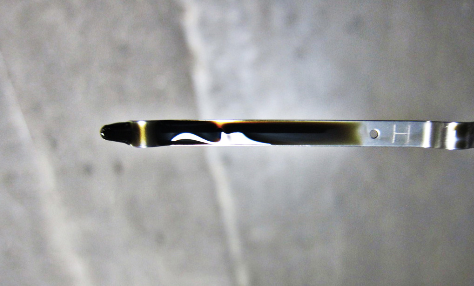 1. Тест "Капля на картоне" После 500 км пробега капните масло со щупа на белый картон. Через час посмотрите: