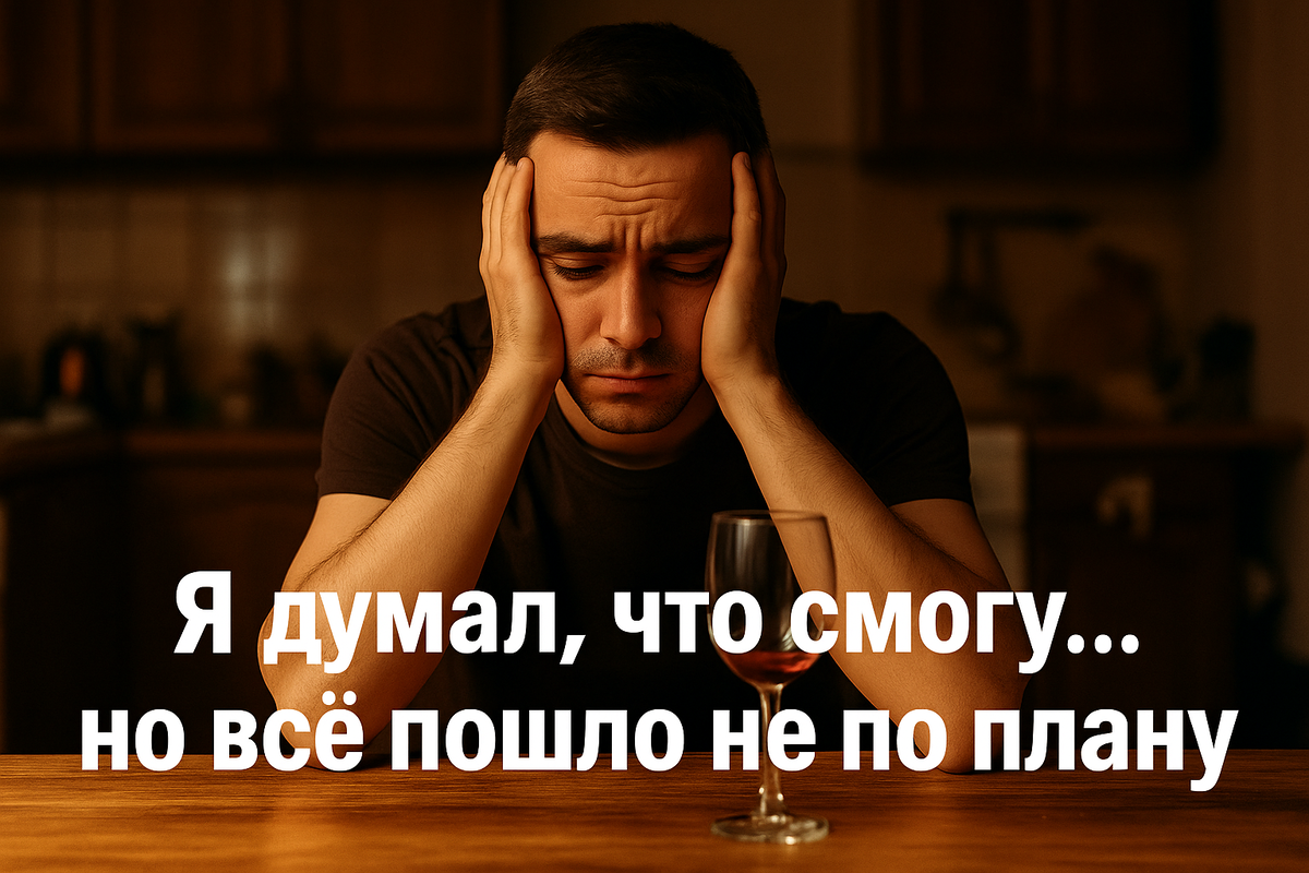 Сейчас я уже трезвый и понимаю, что так и должно было случиться. Но если вернуться в самое начало, то мой первый месяц без алкоголя был далёк от победы. Помню, как в первый раз я решил бросить. Сидел вечером, налил себе воду и сказал: «Всё, хватит. С сегодняшнего дня — ни капли». Первые пару дней я был на подъёме. Казалось, что всё просто: «Ну, я же не алкоголик, смогу держаться». Я даже чувствовал гордость за себя. Через несколько дней началось. Вечером пусто и скучно. Руки сами тянутся выпить пивка или винчика. Мозг подкидывает картинки — весёлые компании, вечер с бокалом, разговоры. Я начал сам себя уговаривать: В какой-то момент я сдался. Сказал себе: «Ну ладно выпью чуть-чуть». Но «чуть-чуть» превратилось в несколько дней подряд. Тут я впервые заметил, что у меня уже есть определённый цикл: держусь — потом позволяю себе немного — потом откатываюсь в запой (пью по вечерам после работы несколько дней подряд без остановки). После этих дней было стыдно. И физически тяжело: голова