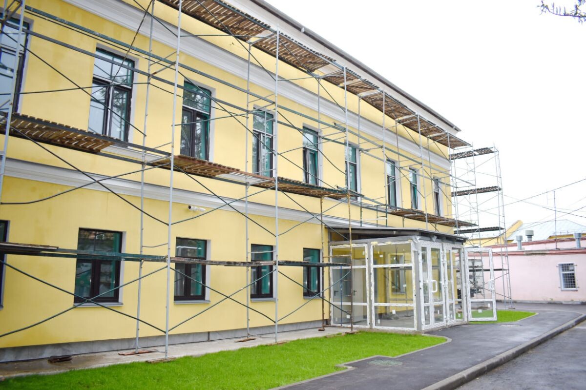 В Кинешме завершается ремонт детской поликлиники №1 на улице Ленина. Закончилась самая сложная часть работ, сейчас ведется отделка фасада и внутренних помещений, установка новой кровли, завершается благоустройство. Ход работ накануне оценил губернатор Станислав Воскресенский. В частности, он отметил, историческое здание поликлиники сохранено за счет усиления основных конструкций. Как напомнили в региональном правительстве, к ремонту поликлиники №1 приступили после обсуждений с жителями города в рамках проекта «Решаем вместе». Площадь исторического объекта составляет более 2,2 тыс. кв. м, само оно состоит из двух частей. Лицевая является объектом культурного наследия местного значения 19 века, а в 1950-х годах она была расширена: добавили третий этаж. Вторая часть объекта – это пристройка советского периода 1950-х годов. Известно также, что к ремонту поликлиники приступили в мае 2024 года. С тех пор на объекте устроили перекрытия, отреставрировали фасад и окна. Пристройка советского пе