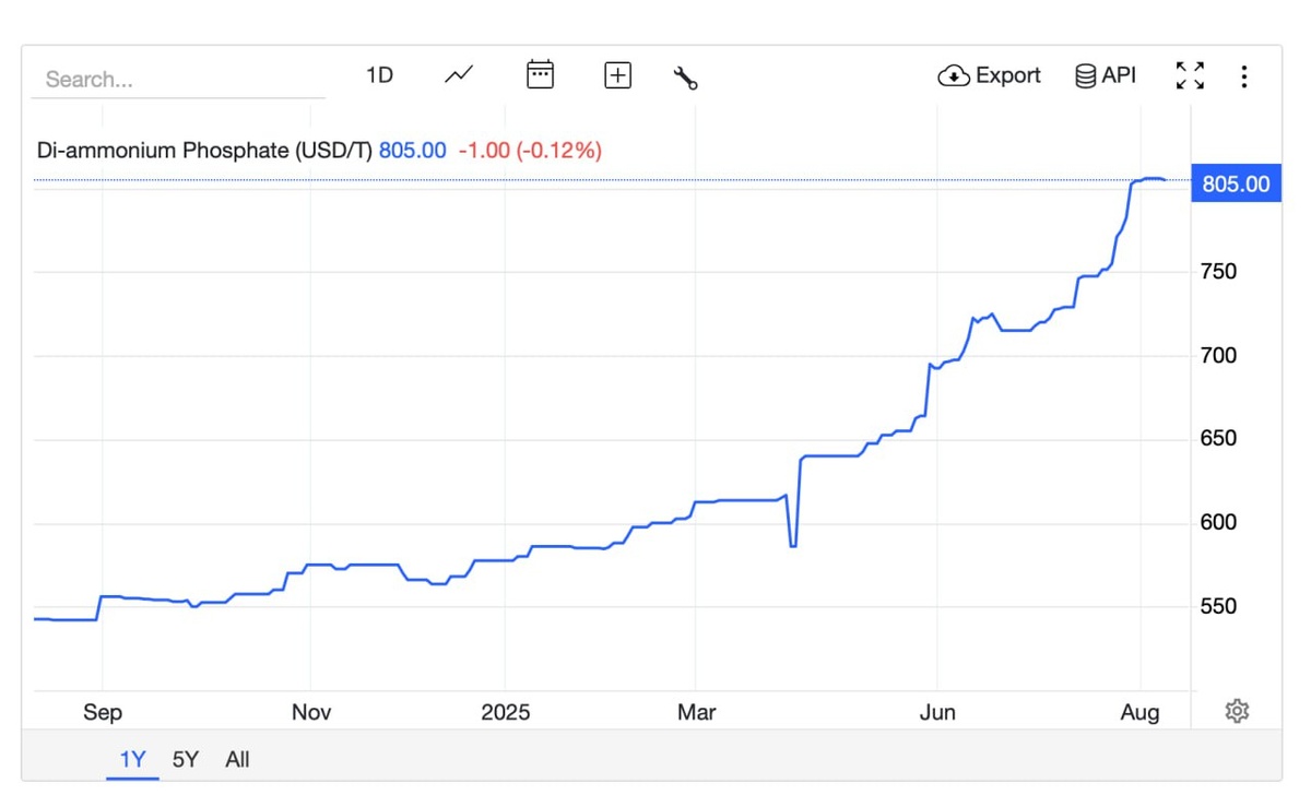 Фосагро — топ за свои деньги? Вчера Фосагро отчитался за первое полугодие 2025 года, а также компания представила стратегию до 2030 года. Посмотрим, что там интересного: Ключевые финансовые показатели: Выручка: 298,6 млрд ₽ (+23,6 % г/г), Чистая прибыль: 75,5 млрд ₽ (+ 41 % г/г) EBITDA: 94,6 млрд ₽ (+26,8 % г/г), Рентабельность по EBITDA: 30% FCF вырос более чем в два раза до 56,5 млрд ₽ Чистый долг сократился до 245,7 млрд ₽. Соотношение чистого долга к EBITDA LTM — 1,2 Операционка умеренно улучшается. Объём производства агрохимической продукции вырос на 4 % до 6,12 млн т, в том числе фосфорных удобрений и кормовых фосфатов – на 6 % до 4,69 млн т. Продажи агрохимической продукции увеличились на 2,4 % до 6,24 млн т (фосфорных удобрений +2,8%), благодаря расширению доступа на рынки Индии, Африки и Европы. Дивиденды Совет директоров рекомендовал выплатить по итогам 1-го полугодия 2025 г. дивиденды в размере 387 ₽ на акцию (див. доходность около 5%). За второе полугодие, с учетом ро