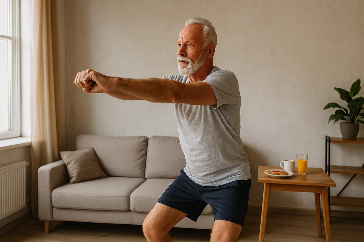 В 55 лет я вышел от врача с приговором. Не в прямом смысле, но звучало не лучше: — Ну что, у вас лет десять активной жизни осталось, а потом суставы, сердце, давление… готовьтесь. Я тогда ещё улыбнулся в ответ, но внутри всё упало. Знаете, когда тебе уже за пятьдесят, каждое слово про «конец» звучит как выстрел. Я вышел на улицу и подумал: «Неужели всё? Десять лет — и привет, лавочка, телевизор и таблетки горстями?» Сейчас мне 75. Я поднимаюсь на пятый этаж без лифта быстрее, чем сосед Пашка, которому всего 43. И нет, я не съел волшебную таблетку и не нанял персонального тренера. Всё изменили две простые утренние привычки — приседания и правильный завтрак. (Планы питания, рецепты и тренировки 👉 Формула тела) После того разговора с врачом я пару недель жил, как в тумане. На работу — вернулся усталый. С работы — сил нет даже на ужин. Утром вставал с кровати, как будто на мне мешок цемента. И самое страшное — я начал верить, что так и должно быть. А потом случайно разговорился с одним з