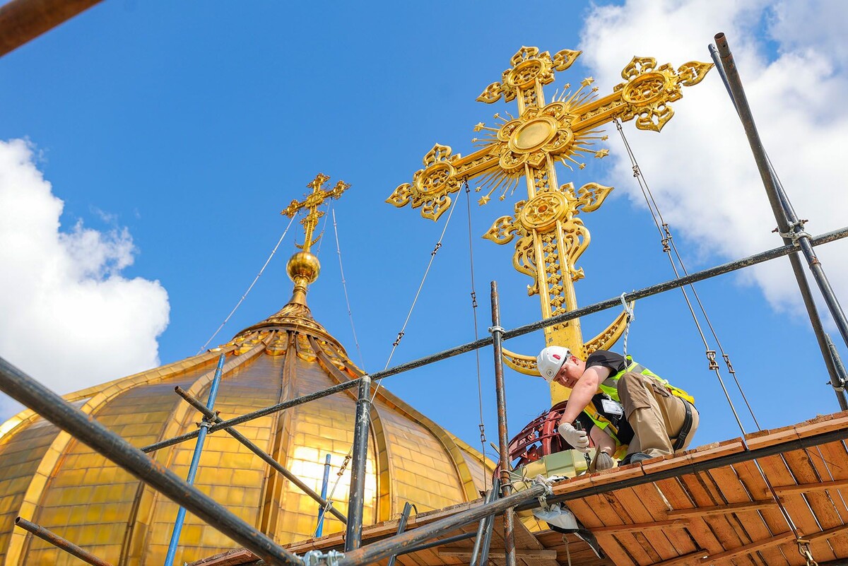 Начался ремонт куполов четырех звонниц храма Христа Спасителя в центре столицы. Об этом сообщил заместитель мэра Москвы по вопросам ЖКХ и благоустройства Петр Бирюков. По словам заммэра, купола звонниц главного храма страны не ремонтировались более 25 лет. В этом году специалисты полностью обновят конструкции и установят новое покрытие из металлических листов, скрепленных замковым способом. Для организации высотных работ на четырех звонницах возвели строительные леса общей площадью 17 тыс. кв. м. Их закрыли баннерами для сохранения облика здания и обеспечения безопасности посетителей. Уже демонтировали покрытия куполов общей площадью почти 1,9 тыс. кв. м и навершия – декоративные элементы, украшающие их вершины. Также провели ремонт металлической обрешетки куполов, выполнили грунтовку обрешетки и обработку гидрофобными и антикоррозийными составами. Сейчас подготавливают к установке новые покрытия куполов, изготавливают новые навершия. Проводятся ремонтно-реставрационные мероприятия на