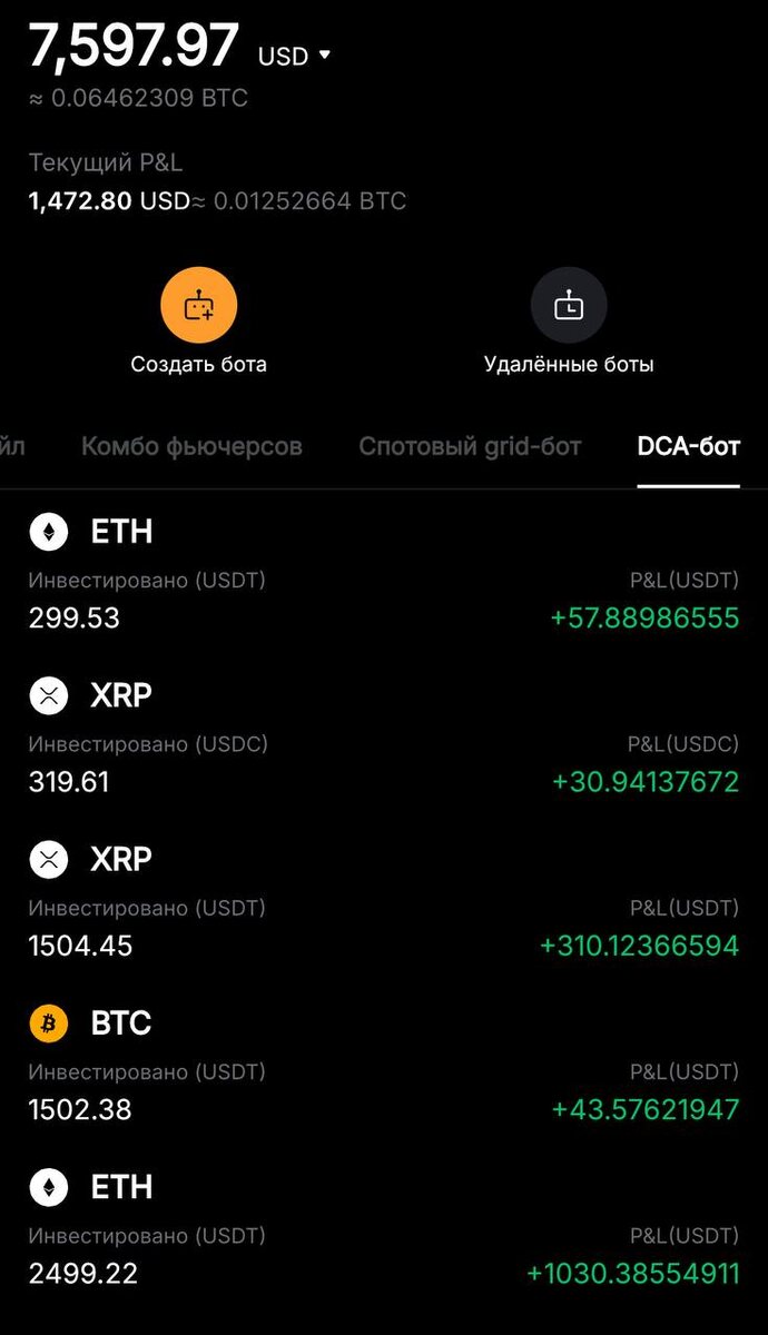 🔥 DCA работает! Всего 50 дней по стратегии DCA — и только по Ethereum уже +$1 000 чистыми 💰 📊 Параллельно в работе BTC и XRP, тоже в плюсе. 💡 Напомню, DCA (Dollar-Cost Averaging) — это метод, когда ты регулярно докупаешь актив на одинаковую сумму, независимо от цены. Плюсы: • Не ловишь идеальную точку входа (и не переживаешь по этому поводу) • Сглаживаешь волатильность • Постепенно накапливаешь позицию