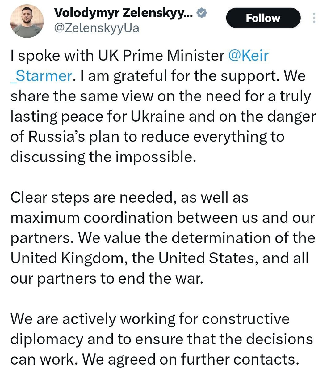 Says Starmer agrees with him on 'danger of Russia's plan'