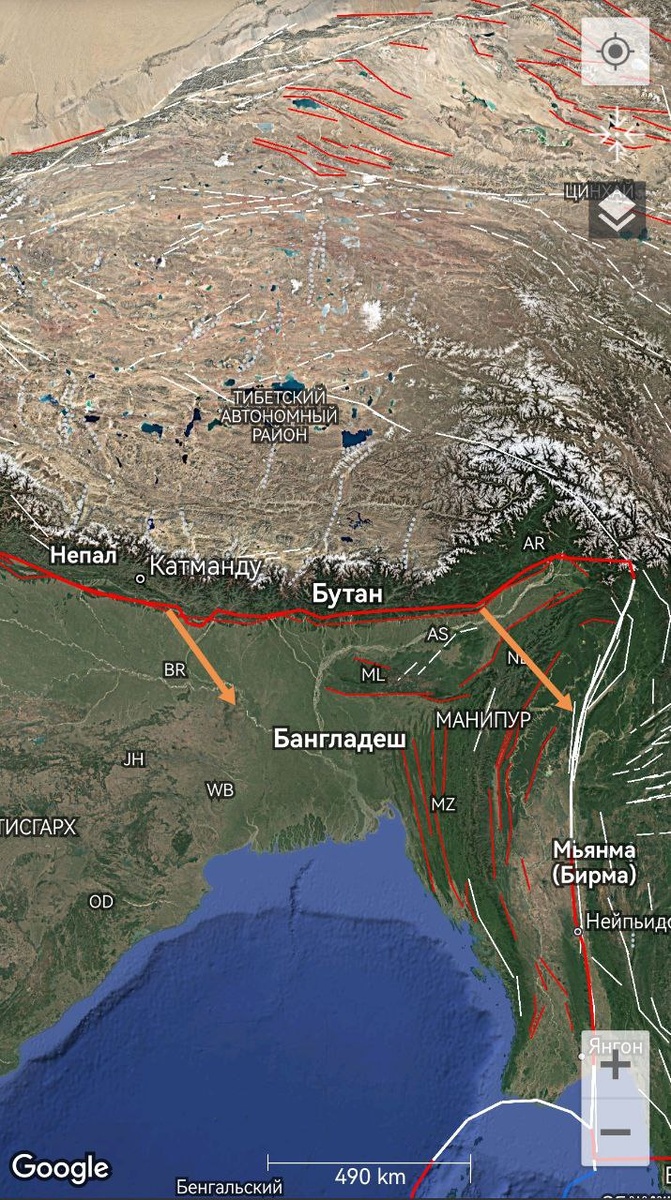 Вот эта картина уровня М7, что наблюдается сейчас на северо-востоке Индостанской плиты, под подозрением.