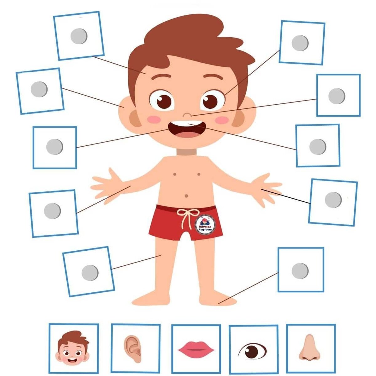 Предлогаю вам увлекательную игру для детей от 1-3 лет, которая поможет изучить или повторить части тела человека и животных весело и интересно! Также эта игра на развитие мелкой моторики и координации движений! Для неё понадобятся совсем небольшие приготовления. Нужны иллюстрации либо фотографии человека или животных. Отлично подойдут ламинированные карточки. Но если таких нет можно взять любые другие картинки, распечатать и заламинировать при помощи скотча. Я, например, взяла 3 изображения с малышами и 3 с разными животными. Далее нарисуйте красным маркером точки на разных частях тела. Для малышей от 1-го до 2-х лет начинайте с более крупных частей тела: рука, голова, нога, живот... Для ребят постарше от 2-х до 3-х задание можно усложнить: палец, коленка, локоть, лоб, ухо... Ещё заготовьте маленькие пластилиновые шарики белого цвета. Пригласите ребёнка к игре, скажите к примеру так, " - Это мальчик Женя, ой-ой-ой, посмотри его покусал комарик! Укусил за ручку, укусил за ножку, у