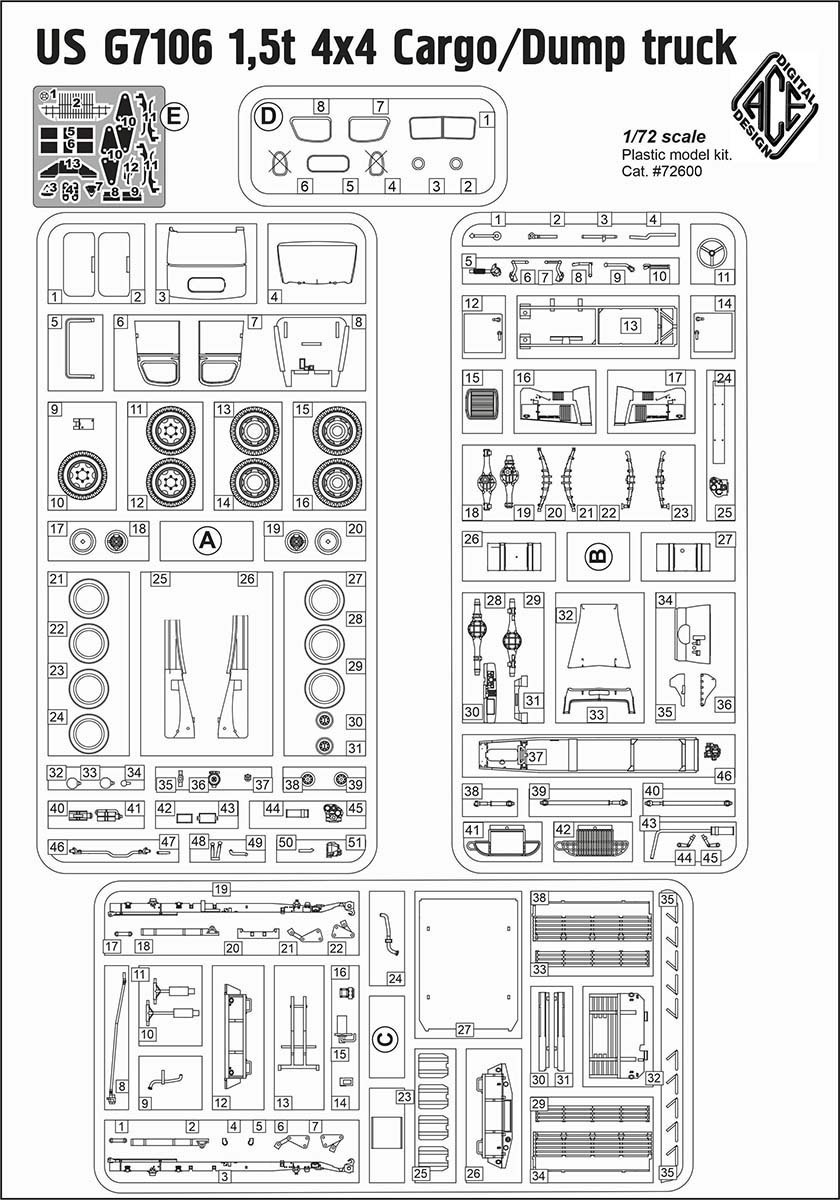 Киевская ACE показала инструкцию своей новой модели грузовика-самосвала "Шевроле" G7106 в масштабе 1/72: US G7106 1,5t 4x4 Cargo/Dump truck (каталожный номер 72600)